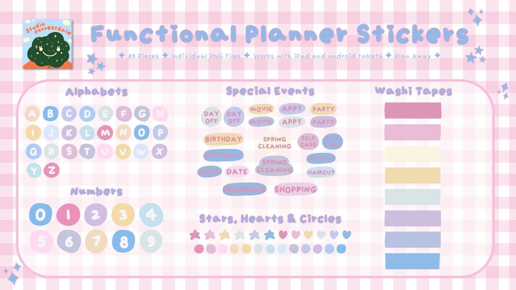 ✦ 89 Functional Digital Planner Stickers ✦ Pastel Collection for GoodNotes & Notability