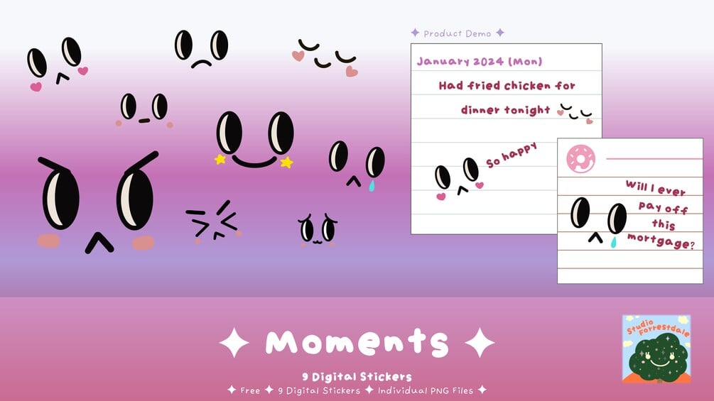 ( F R E E ) Moments Digital Stickers ✦ 9 PIECES ✦CAD$0+CAD$0+https://schema.org/InStockcadMelonMelon2 ratings:)Name a fair price:CAD$Add to cart66 downloadsSize1.29 MBAdd to wishlist New wishlistShare on XShare on Facebook Copy linkCopy product URLRatings5(2 ratings)255 stars100%4 stars0%3 stars0%2 stars0%1 star0%
