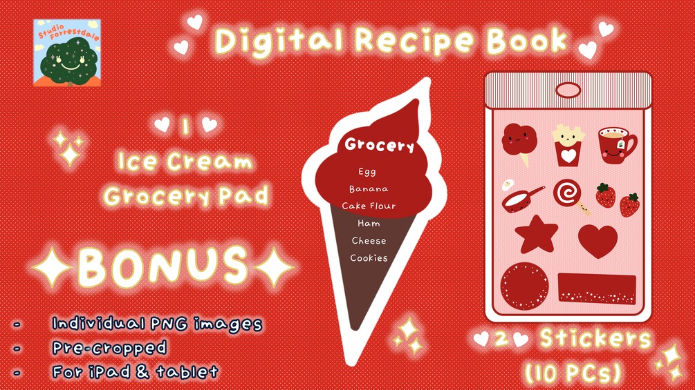 ✦ Bonus Digital Grocery Pad - Included in the Bonus Sticker Pack, 1 individual, pre-cropped PNG image for digital use e.g. GoodNotes, Notability, OneNote