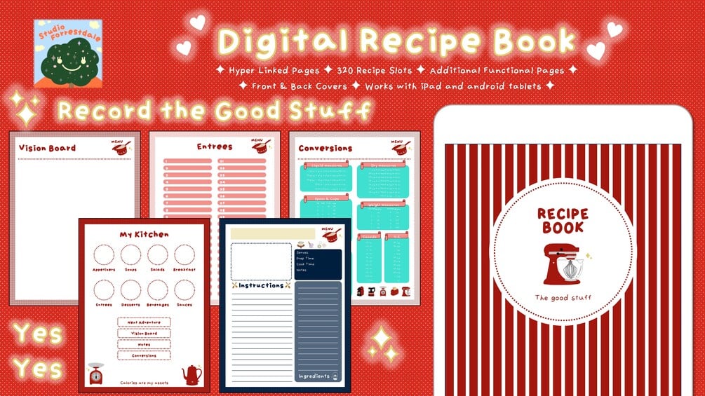 ✦ Digital Recipe Book - 1 PDF file containing 345 pages + 2 pages of front and back cover for digital use e.g. GoodNotes, Notability, OneNote