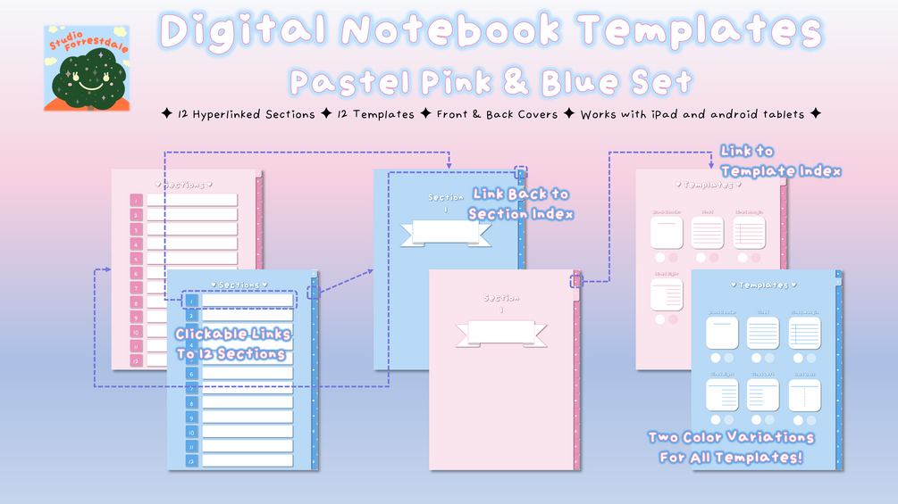 ✦ Hyperlinked Digital Notebook Templates ✦ Flex Note ✦ Pastel Pink & Blue