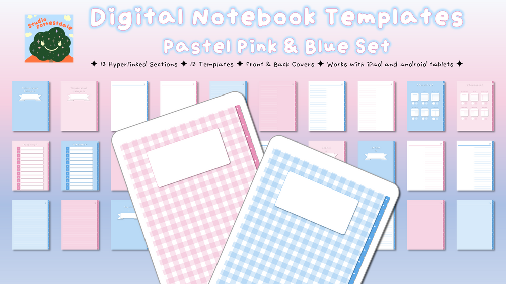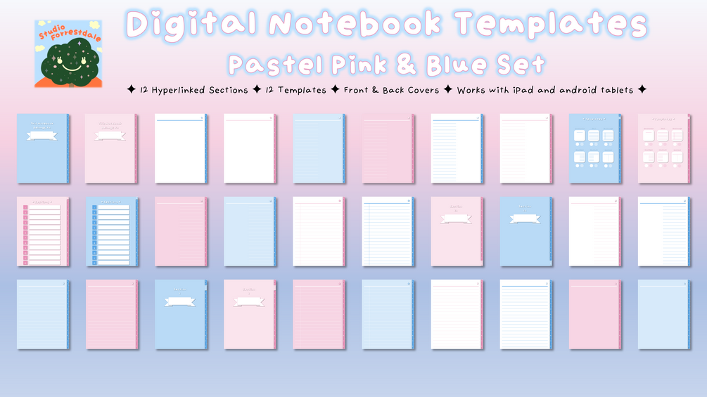 ✦ Hyperlinked Digital Notebook Templates ✦ Flex Note ✦ Pastel Pink & Blue