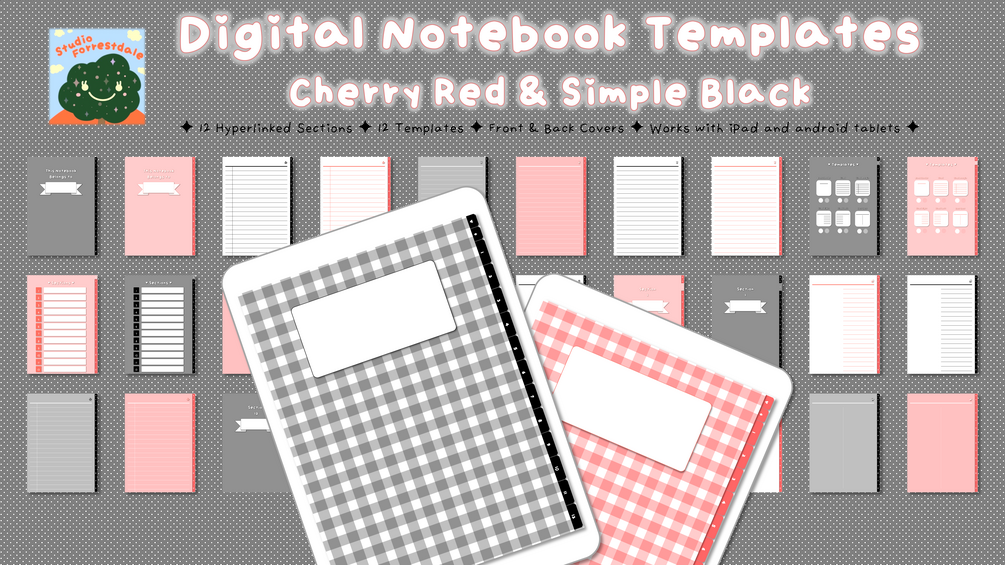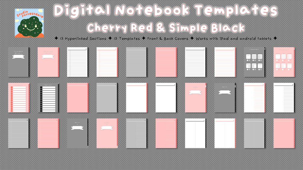 ✦ Hyperlinked Digital Notebook Templates ✦ Flex Note ✦ Cherry Red & Simple Black