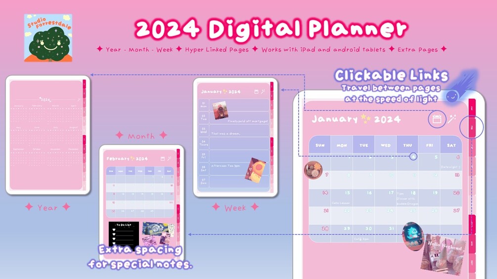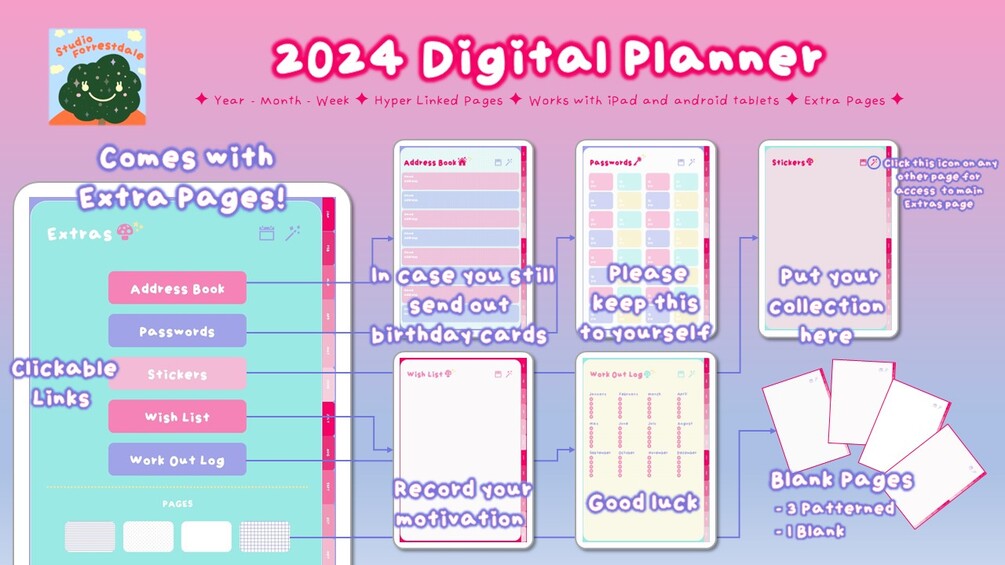 ✨ Hi, this is a simple yet humble little planner with hyperlinked pages for the year of 2024 ❤
