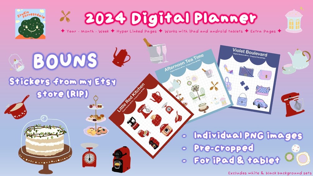 ✦ BONUS ✦ 3 sets of digital stickers (Pre-cropped, individual PNG files) ✦ In 1 zipped file